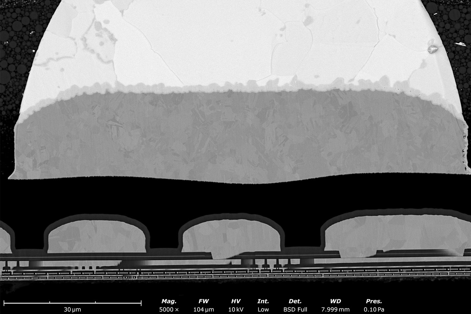 SEM imaging is also highly sensitive to surface morphology and compositional differences which allow engineers to distinguish between layers, interfaces, voids, residues, and defects that may be invisible to other techniques.