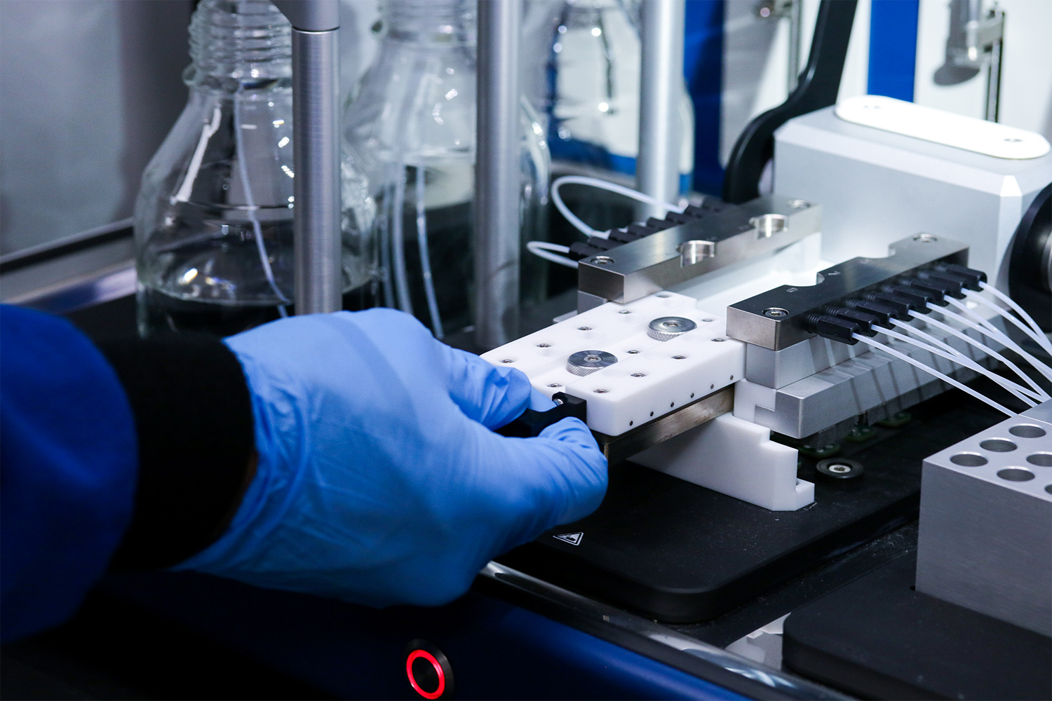 Some QCM-D systems include integrated liquid handling modules, compatibility with harsh solvents, or flow chambers designed for specific sample types, including biological materials like antibodies and cells, which can increase the overall system price. The most automated QCM-D systems can process all liquid samples without user intervention, preventing contamination or unwanted diffusion between steps. Entry-level or mid-range QCM-D systems typically use tubing connected to an external pump to flow liquid samples through the experiment chamber, which may need to be handled when switching liquids for wash or buffer-flow steps. These manual interventions can introduce errors, contamination, or variability if the operator is not careful.