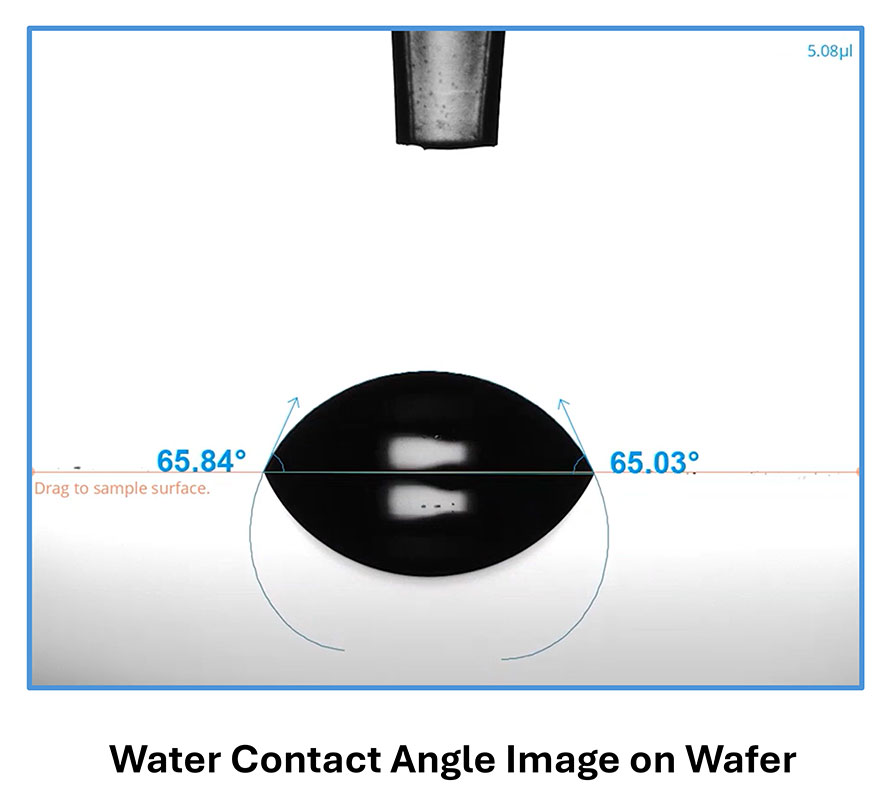 Low contact angle indicates high wettability, which is characteristic of clean or hydrophilic surfaces. High contact angle suggests the presence of contaminants or hydrophobic layers. This simple principle allows engineers to quickly determine whether a wafer is sufficiently clean for downstream processing. The main advantages of this technique are that it is fast, accurate, repeatable, non-destructive, quantitative and cost effective.