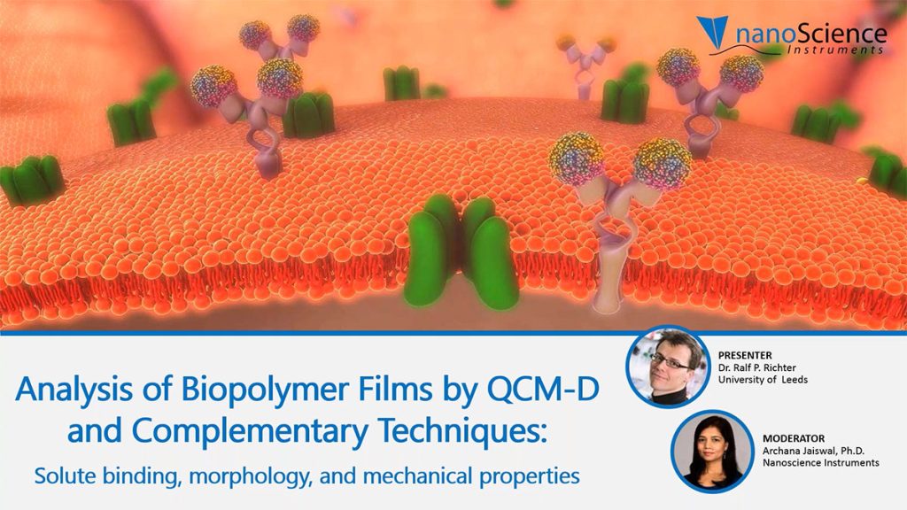 One of the most powerful ways to study the morphological and mechanical changes of biopolymers at various conditions is with QCM-D (Quartz Crystal Microbalance with Dissipation monitoring). This extremely sensitive analytical technique can measure the mass and mechanical properties of adsorbed films in real time, allowing the quantification of film thickness, viscoelastic properties, binding and unbinding rates, and stability.